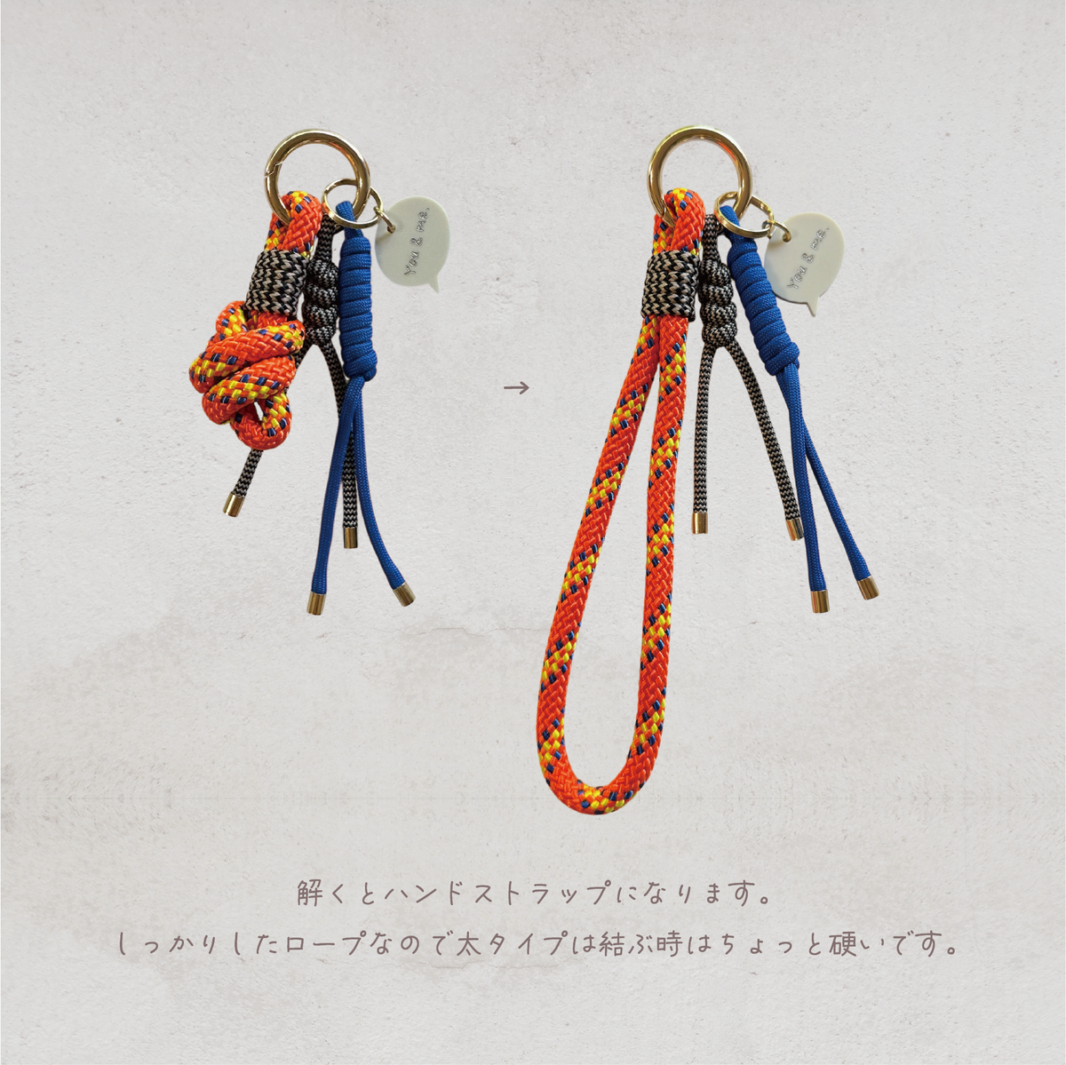こちらの商品ページは【ベース+ハンドストラップにもなるアクセントチャーム(太)】の販売ページです。